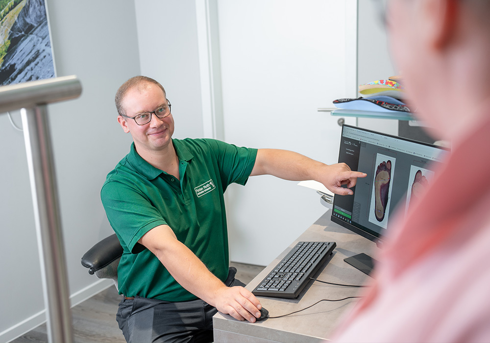 Unsere Fußanalyse ist der erste Schritt zu einer optimalen Versorgung. Mit modernster Messtechnik erfassen wir präzise die Belastung und Haltung Ihrer Füße – im Stand und in der Bewegung. Die Ergebnisse bilden die Grundlage für individuell angepasste Einlagen und Schuhe, die Ihre Füße gezielt entlasten und Ihre Haltung verbessern. So entsteht ein ganzheitliches Konzept für gesundes, beschwerdefreies Gehen.